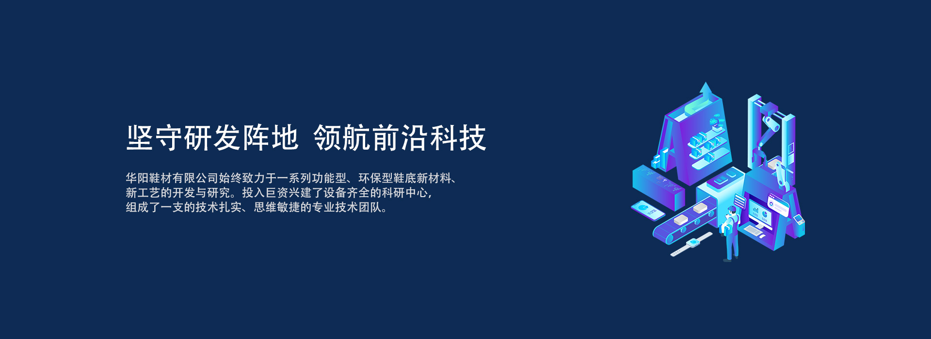 華陽(yáng)鞋材有限公司始終致力于一系列功能型、環(huán)保型鞋底新材料、新工藝的開(kāi)發(fā)與研究。投入巨資興建了設(shè)備齊全的科研中心,組成了一支的技術(shù)扎實(shí)、思維敏捷的專(zhuān)業(yè)技術(shù)團(tuán)隊(duì)。全球領(lǐng)先的材料科學(xué)分析儀器和檢測(cè)設(shè)備,形成了從材料研發(fā)、新品開(kāi)發(fā)、實(shí)驗(yàn)測(cè)試、技術(shù)轉(zhuǎn)移到規(guī)模生產(chǎn)的一體化作業(yè)流程,為產(chǎn)品的生產(chǎn)提供了有力的品質(zhì)保障。
